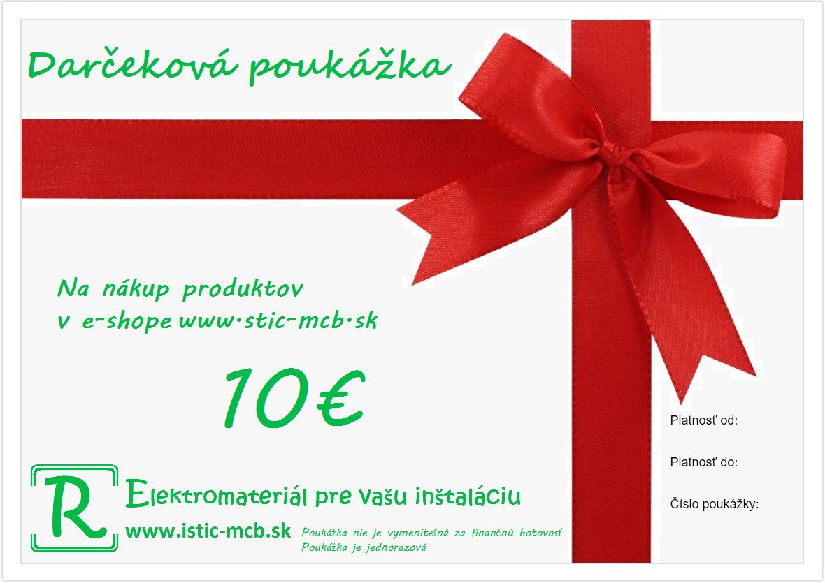 Darčeková poukážka určená na nákup v našom e-shope v hodnote 10 EUR.