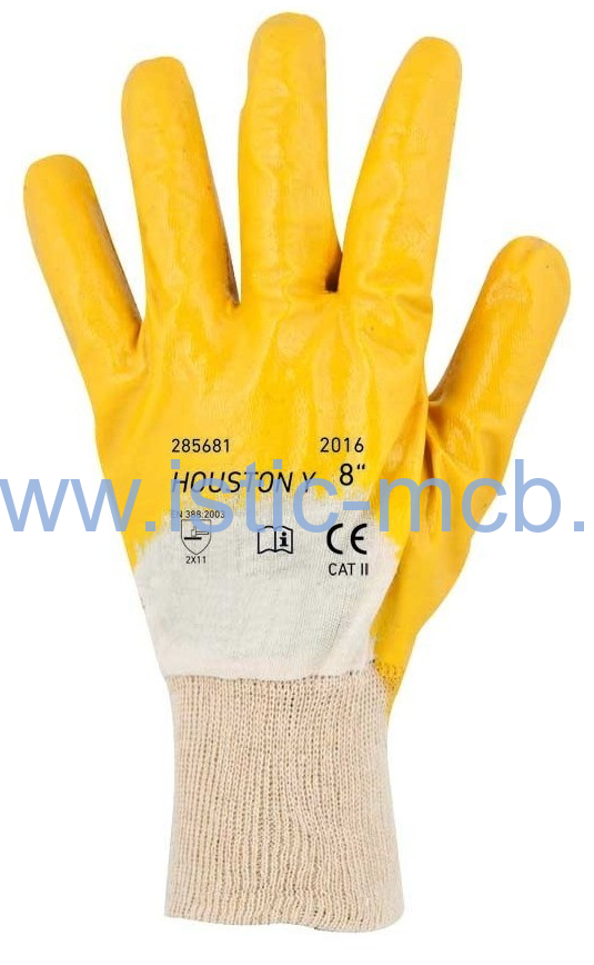 Rukavice HOUSTON bavlnené 3/4 máčané nitrilom žltéskladom - odosielame do 24 hodín 4 ks0,85 €/ ks