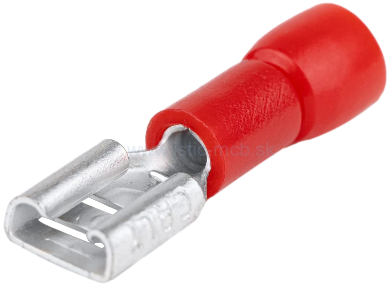 - Celoizolovaná Cu lisovacia dutinka plochá, červená, 4,8×0,8mm, 1,5mm²