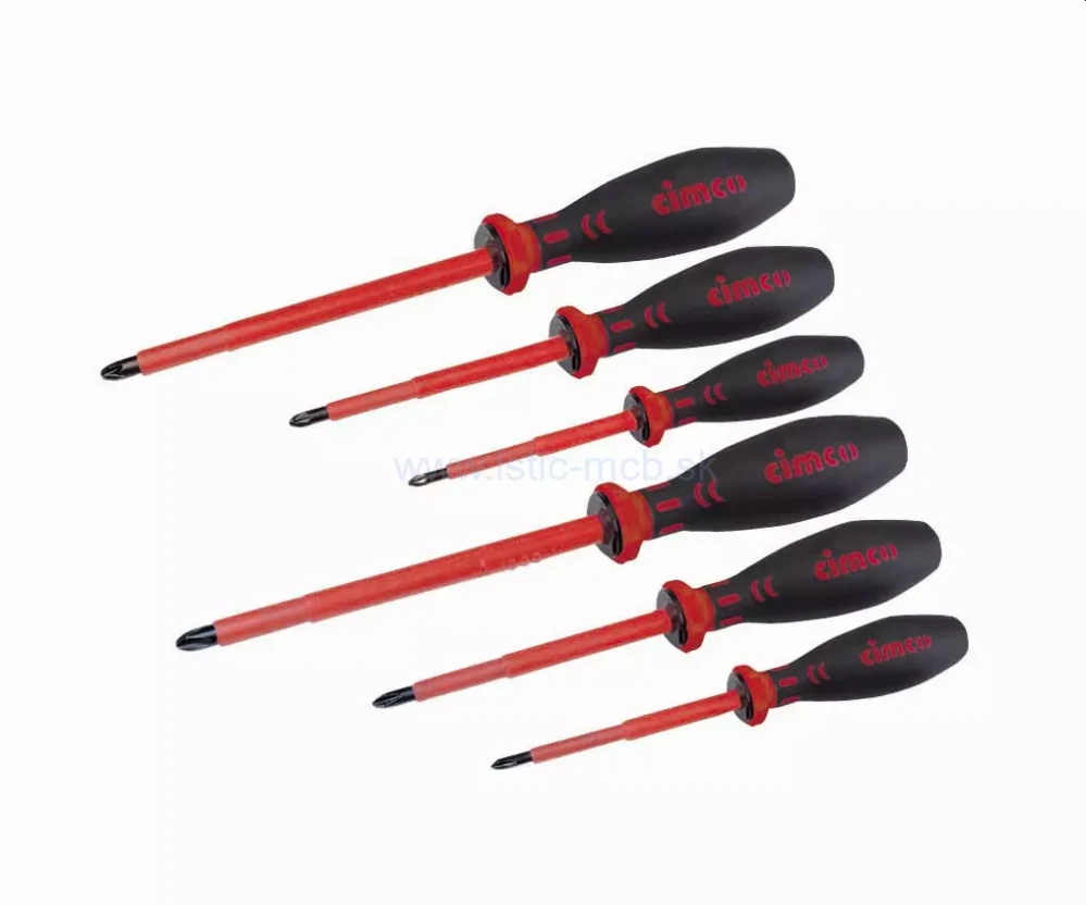 Izolovaný skrutkovač VDE podľa IEC 60900Klasifikácia VDE 0682, časť 201. Jednotlivo testované vo vodnom kúpeli pri skúšobnom napätí 10 000 V.