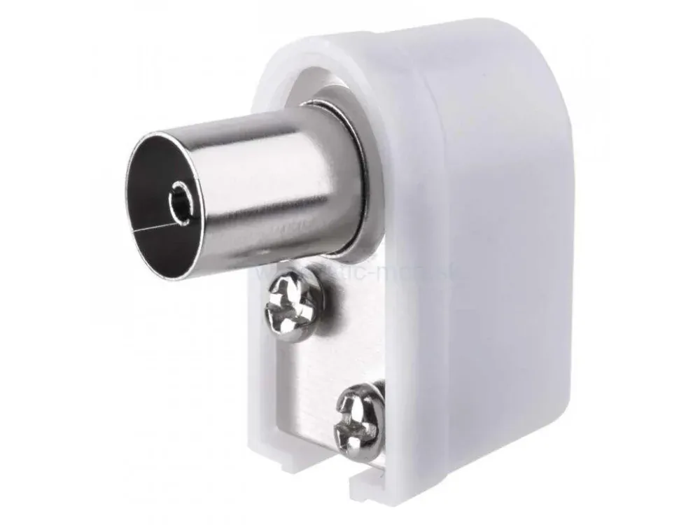 Konektor IEC A206 zásuvka zacvakávací uhlový biely. Zásuvka je určená na napojenie na koaxiálny kábel.