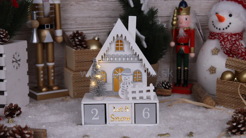 LED adventný kalendár, domček na baterky, drevodo 3 dní 5 ks23,10 €/ ks