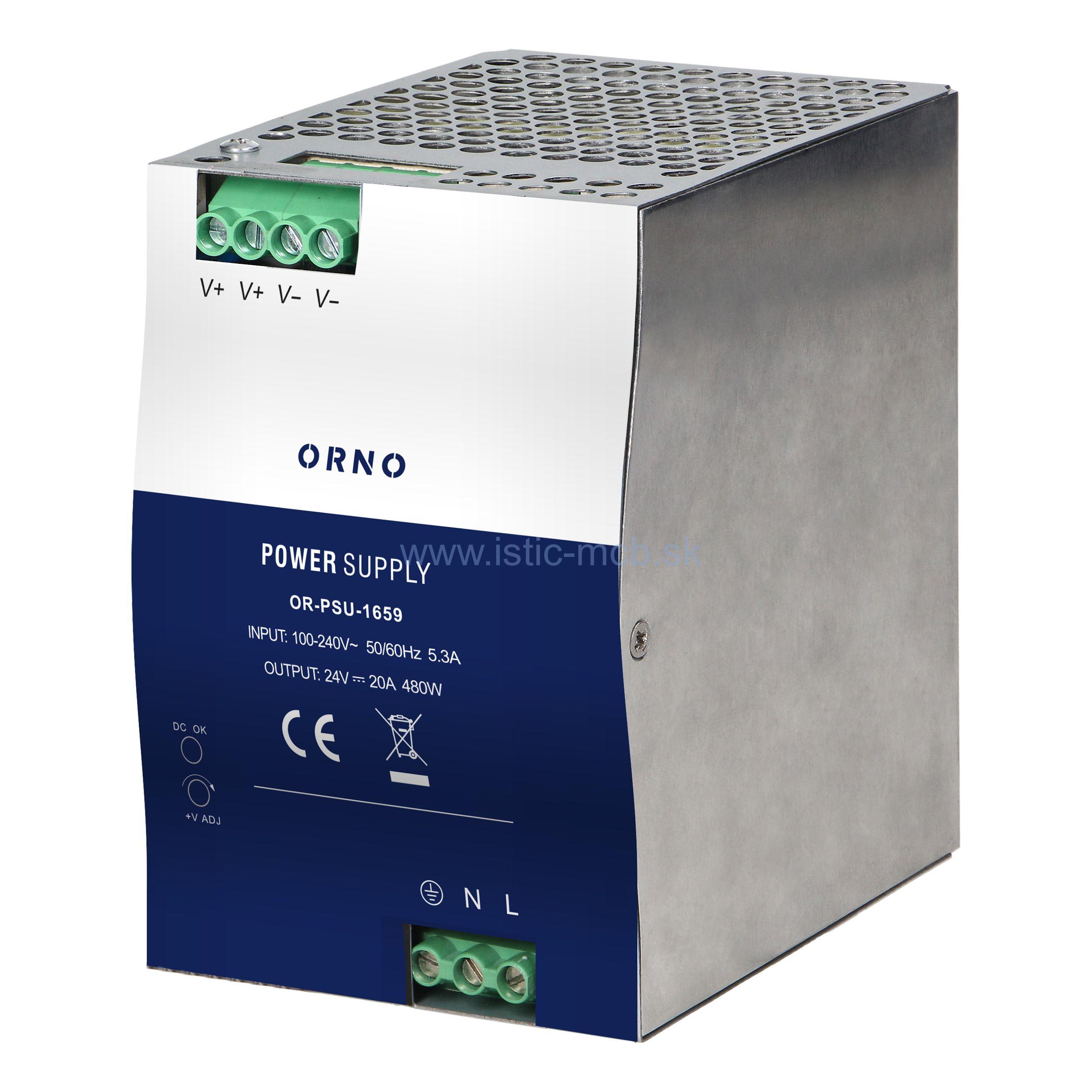 - Napájací priemyselný zdroj na DIN lištu 24VDC 480W