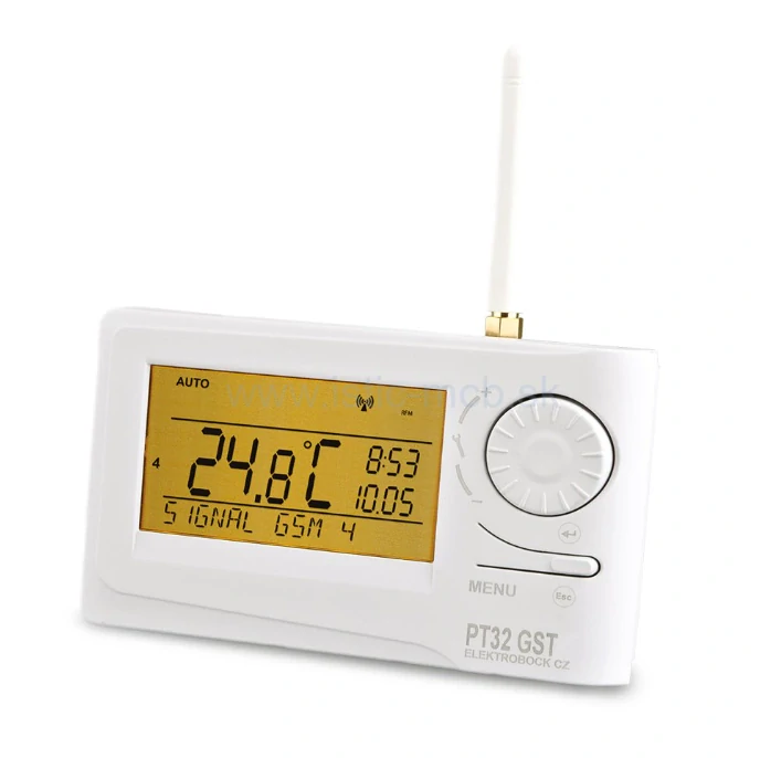 PT32 GST je inteligentný priestorový digitálny termostat s implementovaným GSM modulom. Je vhodný ku všetkým kotlom, ktoré vyžadujú bezpotencionálne (beznapäťové) spínacie kontakty (napr. plynové kotle, elektro - kotle, obehové čerpadlá, termoelektrické pohony alebo klimatizačné jednotky).Vkladajte sim karty typu: MiniSIM (2FF)